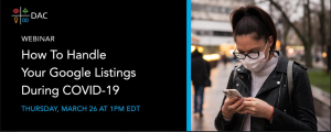 Google My Business (GMB) listings could prove to be a priceless local communication tool during the COVID-19 pandemic. Join DAC's Director of Local Optimization on Thursday, March 26 to learn which fields and features are applicable to your business—and how you can use them to engage your local audiences in their time of need. About the Presenter Kyle Harris - Director of Local Optimization, DAC With over a decade of digital marketing experience, Kyle has helped hundreds of brands find…